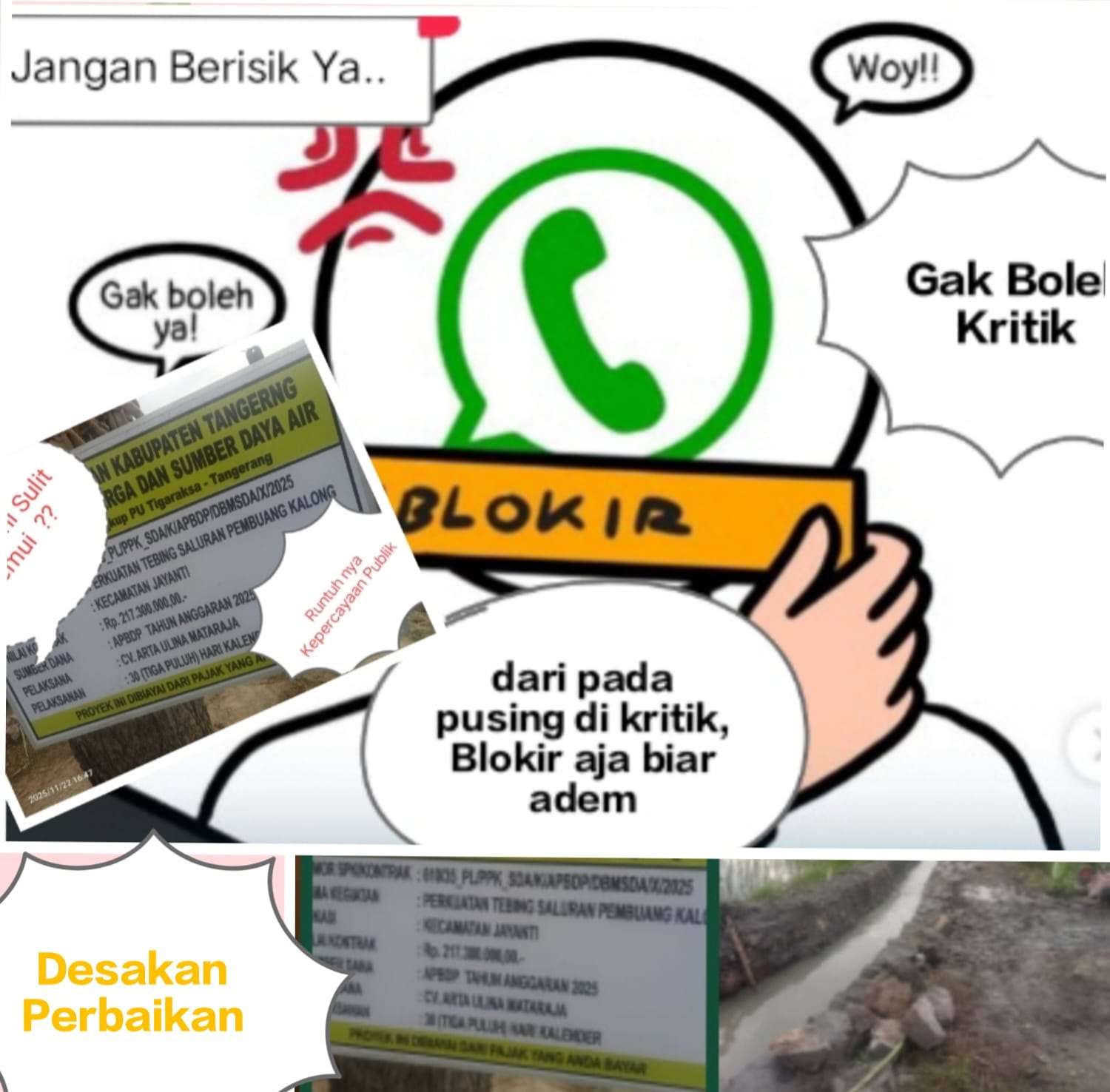 Diduga anti kritik dan Seolah tak mampu memahami fungsi Jabatan publik dengan baik, salah satu Oknum Kepala bidang (Kabid) Dinas Bina marga dan Sumber Daya Air (DBMSDA) Kabupaten Tangerang blokir nomor Watsapp wartawan saat hendak di konfirmasi. Kamis (04/12/2025)
